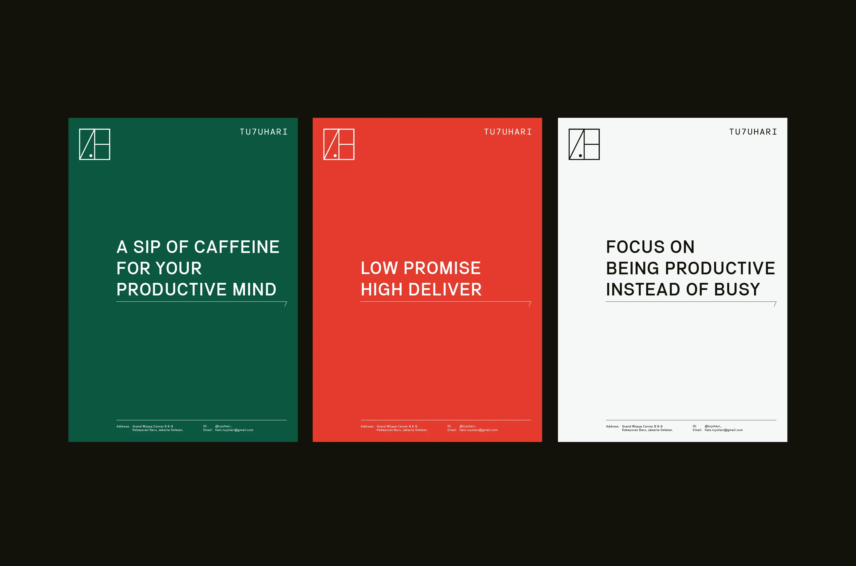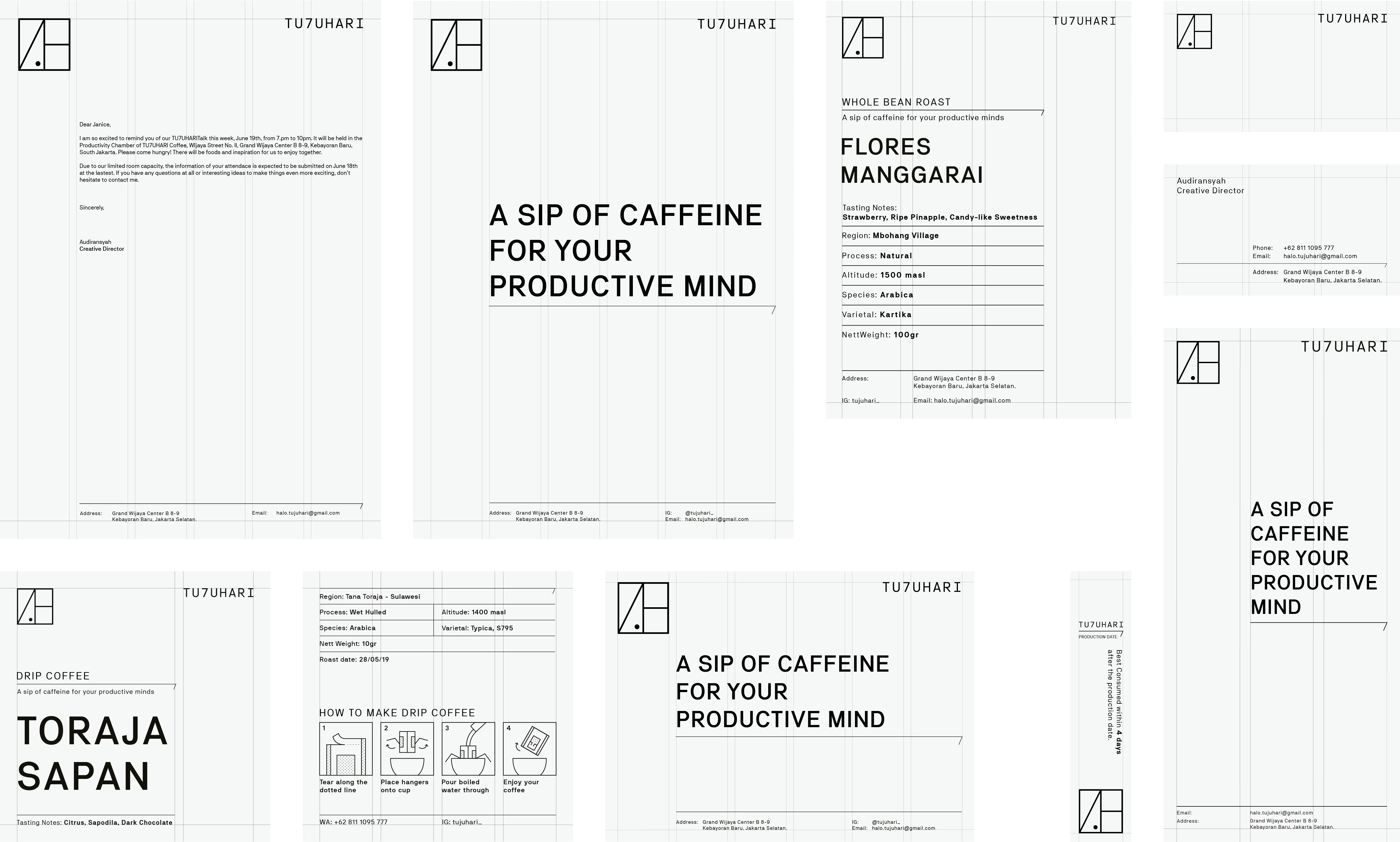 It’s no secret that coffee shops have become a common ground (literally) for a lot of Jakartans. This however has in some ways led to a fault: with the fleeting growth of coffee joints, the city’s third-wave coffee culture is slowly cemented, yet over time it also cumulates in many offering what is more or less the same concept. In an industry where it’s getting harder to establish a distinctive identity, the TU7UHARI team approached us for support in optimizing their branding concept, ideation, as well as visual identity system & development.